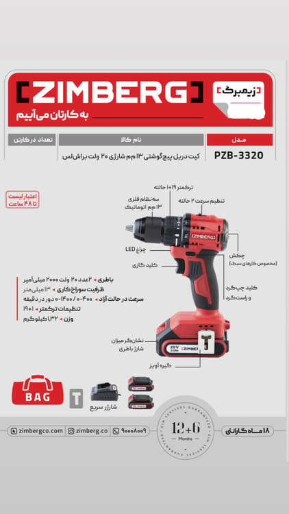 باطری: ۲ عدد باطری ۲۰ ولت ۲۰۰۰ آمپر