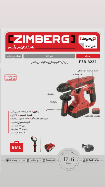 ظرفیت سوراخکاری: بتن: ۲۲ میلی متر -چوب :۲۸ میلیمتر -فلز:۱۳ میلی متر
