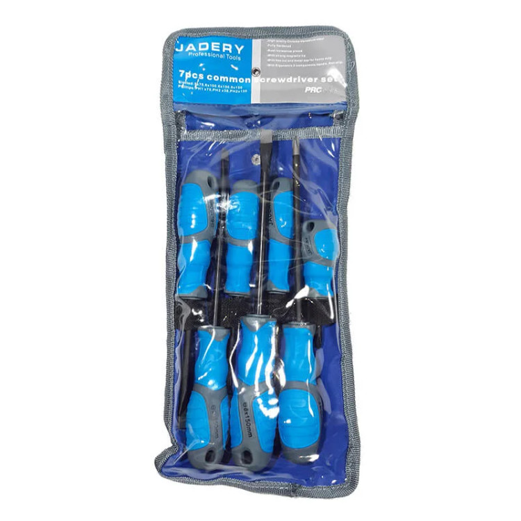 ست پیچ گوشتی 7 عددی ✅برند جادری ✅ ساخت کشور تایوان ✅در سایز های مصرفی : دوسو 150*8و150*6و100*6و75*5 چهارسو 150*PH2و38*PH2و75*PH1