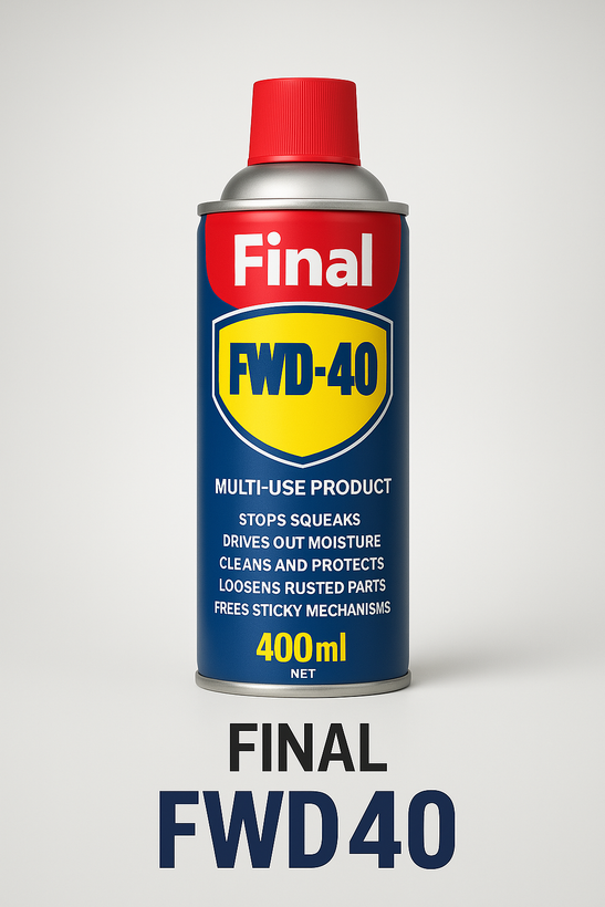 اسپری زنگ زدا و روان کننده فاینال، این محصول با استفاده از مواد اولیه مرغوب خارجى و فرمول مخصوص تولید گردیده و داراى ویژگى ها و کاربردهاى متنوعى مى باشد. ویژگی: شل کردن اتصالات مکانیکی و پاک کننده زنگ زدگی، جلوگیری از زنگ زدگی، روان کنندگی بالا، تمیز کننده و براق کننده استیل.
