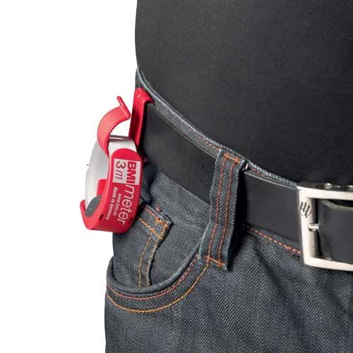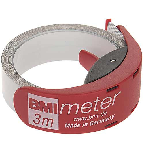 متر 3 متری بدون فنر BMImeter : محصولی آلمانی با ویژگیهای منحصربهفرد میباشد. که به دلیل قوس متفاوت آن به راحتی میتوان بر روی سطوح مختلف علامت گذاری کرد. نوار این متر به صورت حلقه به یک غلاف نیمدایره وصل شده است. این غلاف دارای یک اهرم یا قفل پلاستیکی است که این قفل حرکت متر را چه برای باز شدن و چه برای جمع کردن نوار کنترل میکند؛ یعنی برای استفاده از نوار در هر حالت باید اهرم روی بدنه را فشار دهید.