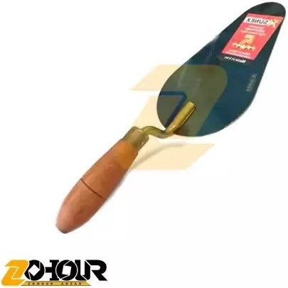 - شکل و اندازه تیغه: تیغه کمچه آجری معمولاً شکلی نوکتیز دارد که امکان مانور دقیق را هنگام کار با آجر و ملات فراهم میکند. اندازه تیغه میتواند متفاوت باشد، از باریک برای کارهای پیچیده تا پهنتر برای بخشهای بزرگتر دیوار. انحنا و انعطافپذیری تیغه به برداشتن و پخش یکنواخت ملات کمک میکند و چسبندگی و تراز مناسب آجرها را تضمین میکند.