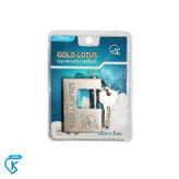 قفل کتابی فولادی گلد لتوس دارای بدنه و مغزی تمام برنجی و روکش فولادی ضد برش می باشد . این قفل دارای ۳ کلید کامپیوتری ویژه می باشد . این قفل دارای یک سیلندر کامل برنجی است که باعث می شود قفل روان و نرم کار کند و همچنین در مقابل رطوبت مقاومت بهتری داشته باشد . یکی از مهمترین نقاط قوت این قفل اینست که دارای میله فولادی ضد برش می باشد و حتی اگر بوسیله سنگ فرز زمان زیادی صرف گردد تا بریده شود از دیگر مزایای این قفل می توان به روکش تمام فودلای آن نام برد که همانند میله ضد برش بوده و تمامی سطح قفل به غیر از رو ته و قسمت داخلی پوشش داده شده که حتی با ضربه های سنگین پتک نیز مقاوم می باشد و حتی با وارد شدن ضربه های بسیار سنگین به دلیل مقاومت زیاد احتمال خرابی بدنه اصلی قفل را دارا می باشد که همین مزیت باعث می گردد تا قفل دیگر به هیچ عنوان باز نگرددد.توجه داشته باشید اصطلاح ضد برش و ضد اسید بودن قفل به این معنی نیست که قفل به هیچ عنوان برش داده نمی شود بلکه به این معناست که اگر یک قفل معمولی در مدت زمان 10 دقیقه قابل برش باشد این زمان در قفل های ضد برش و ضد اسید حدودا; 3 برابر بیشتر می باشد که جهت جلوگیری از سرقت بسیار مفید می باشد